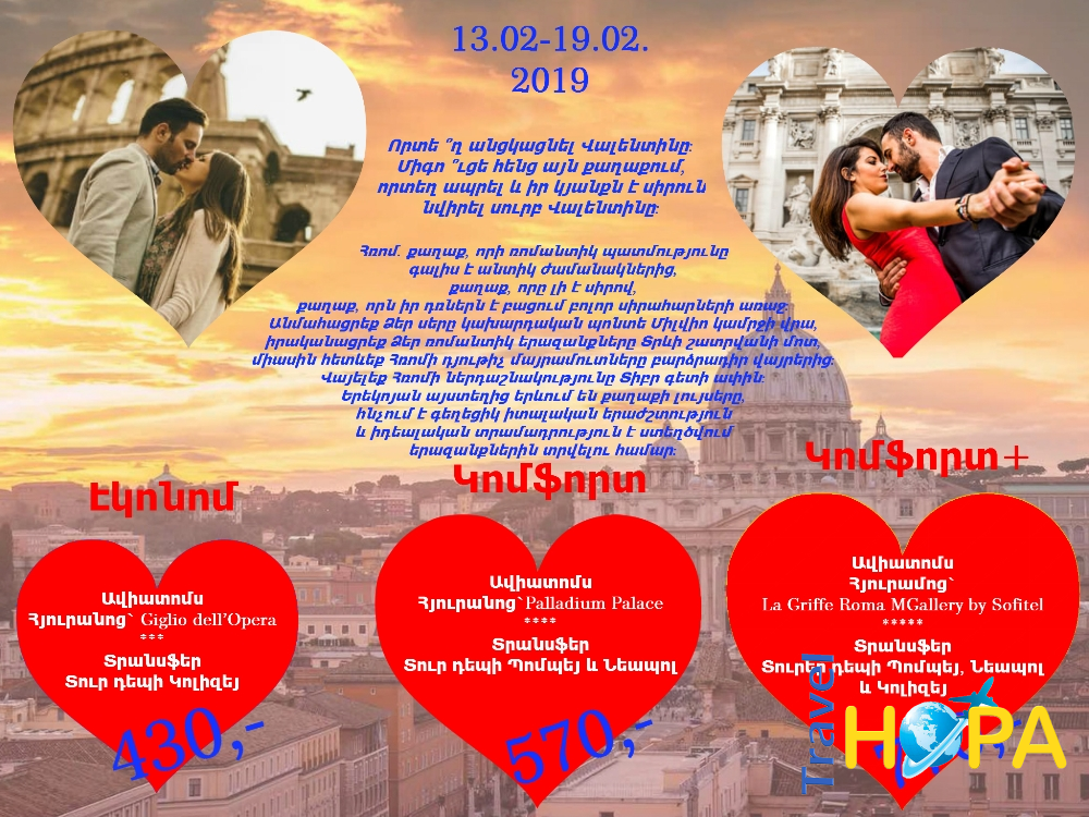 ОПА ТРАВЕЛ предлагает ВАМ 3 варианта посещения РИМА в дни Св. Валентина.